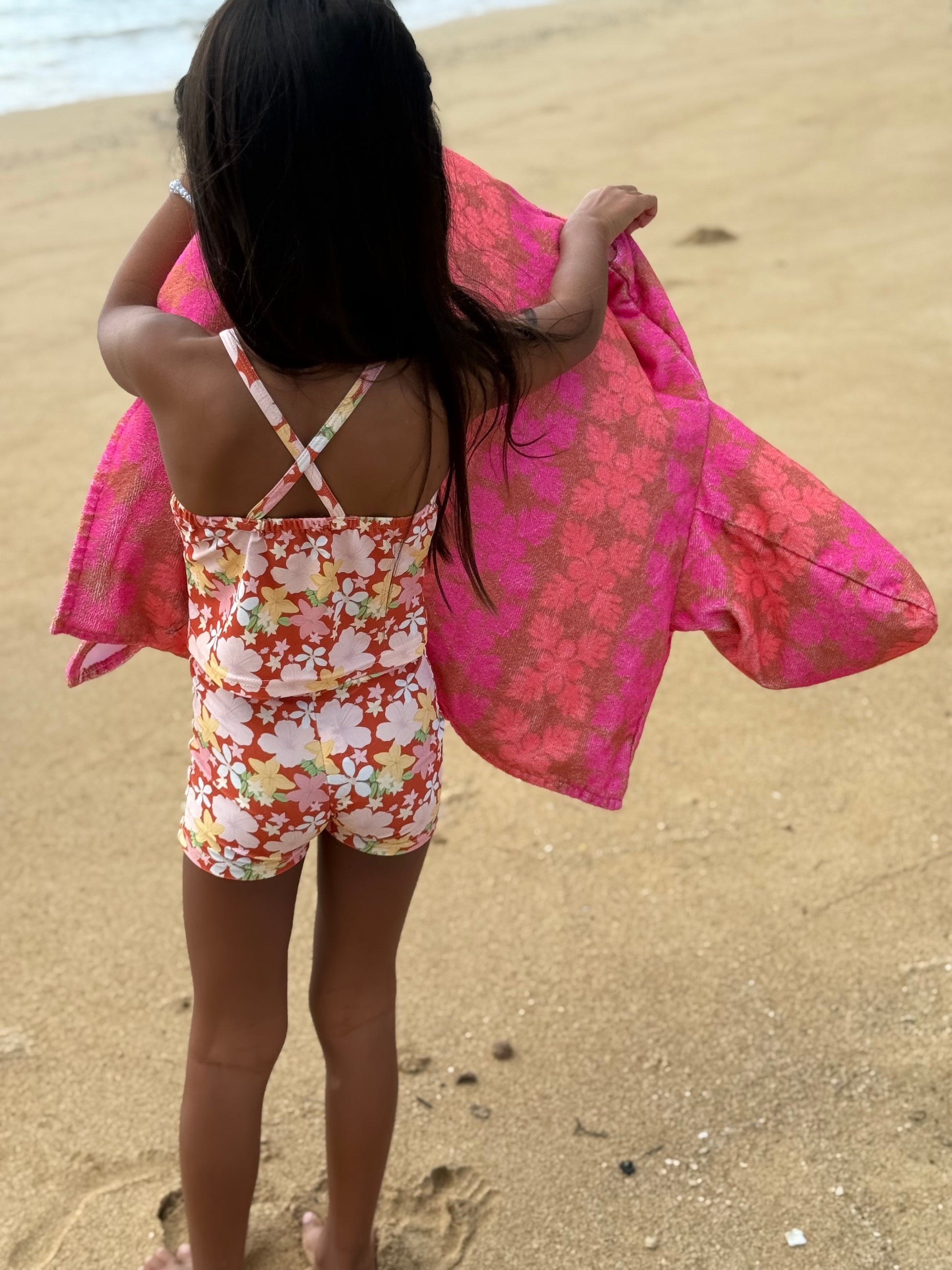 Girls active set collab print with Haus of Keiki. This set comes with shorts and a tankini top in a swimsuit material