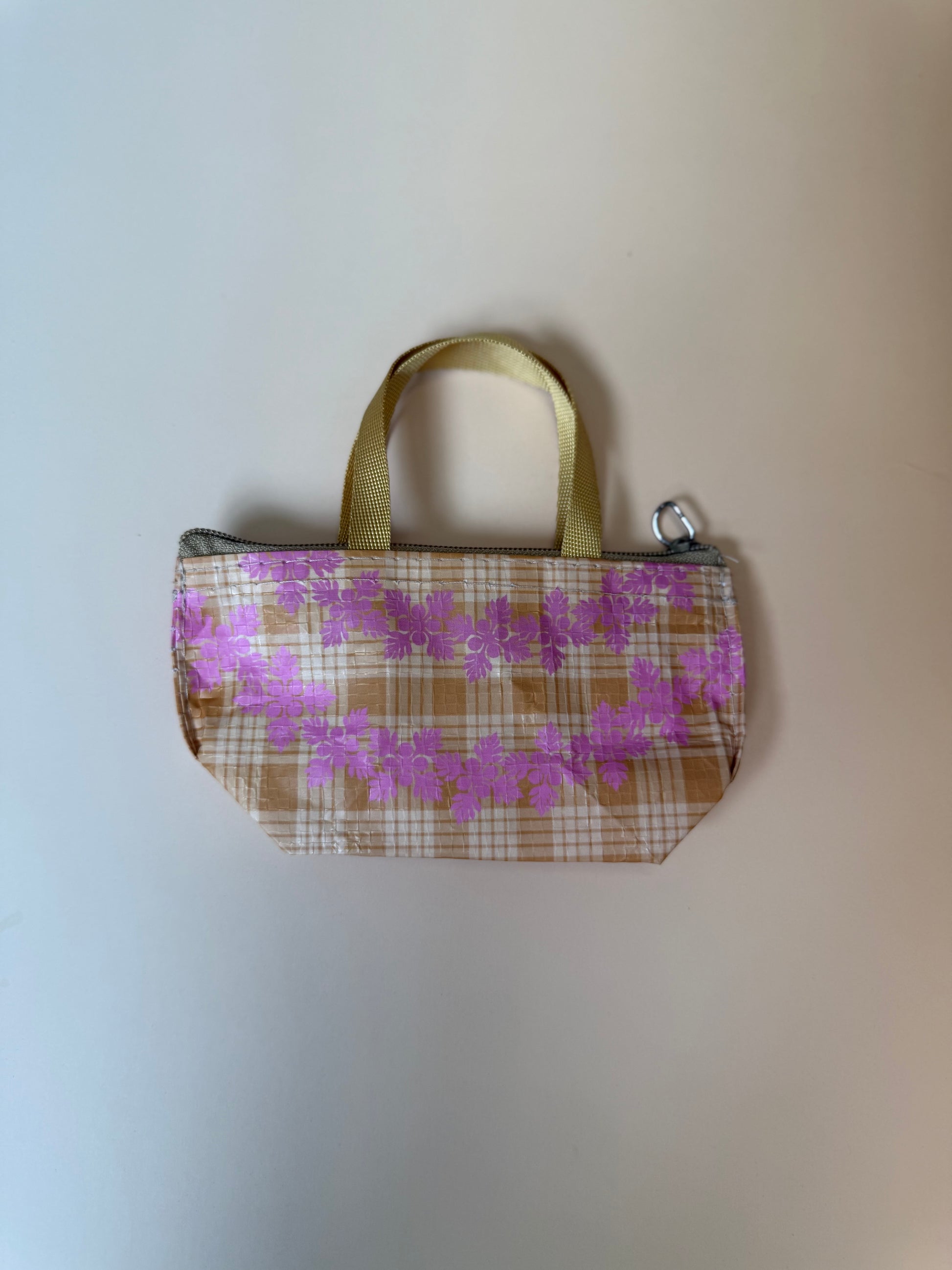 This listing is only for the bitty Bucha in our lei kuiki print. All other accessories are sold separately. This mini bag comes with a silver clip to attach it to your keychain. The bitty bag measures about 4-5 inches long.