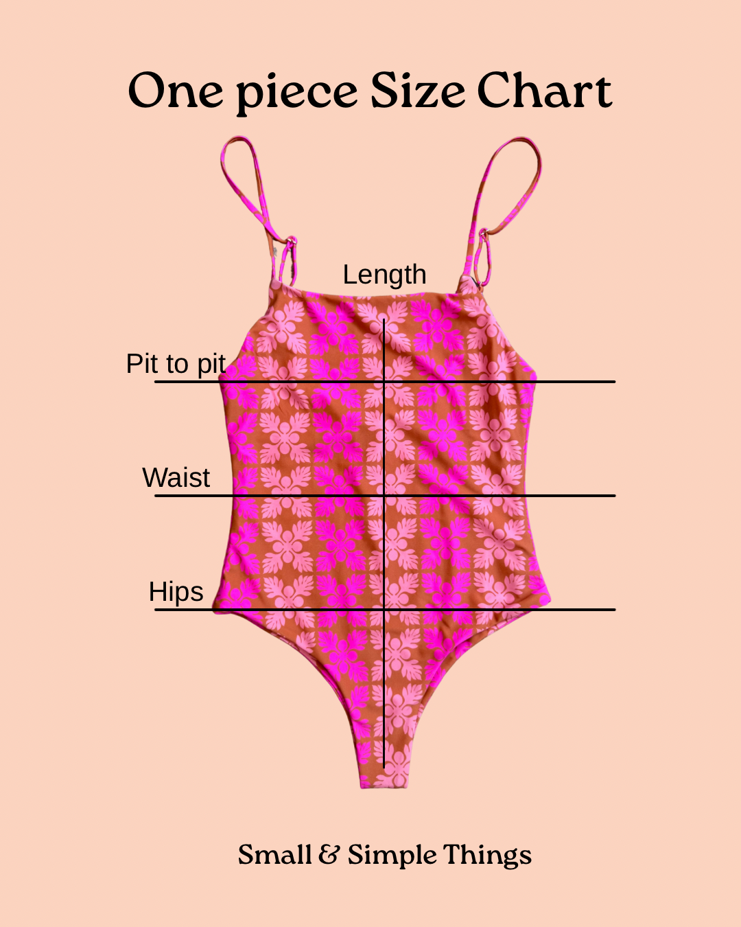 Stretchy one piece bathing suit made out of soft swim material and double lined with hidden seams for a soft and comforting wear. Not padded but has adjustable straps. Sizing is true to size. Please reference our size chart and measurements. All sales final