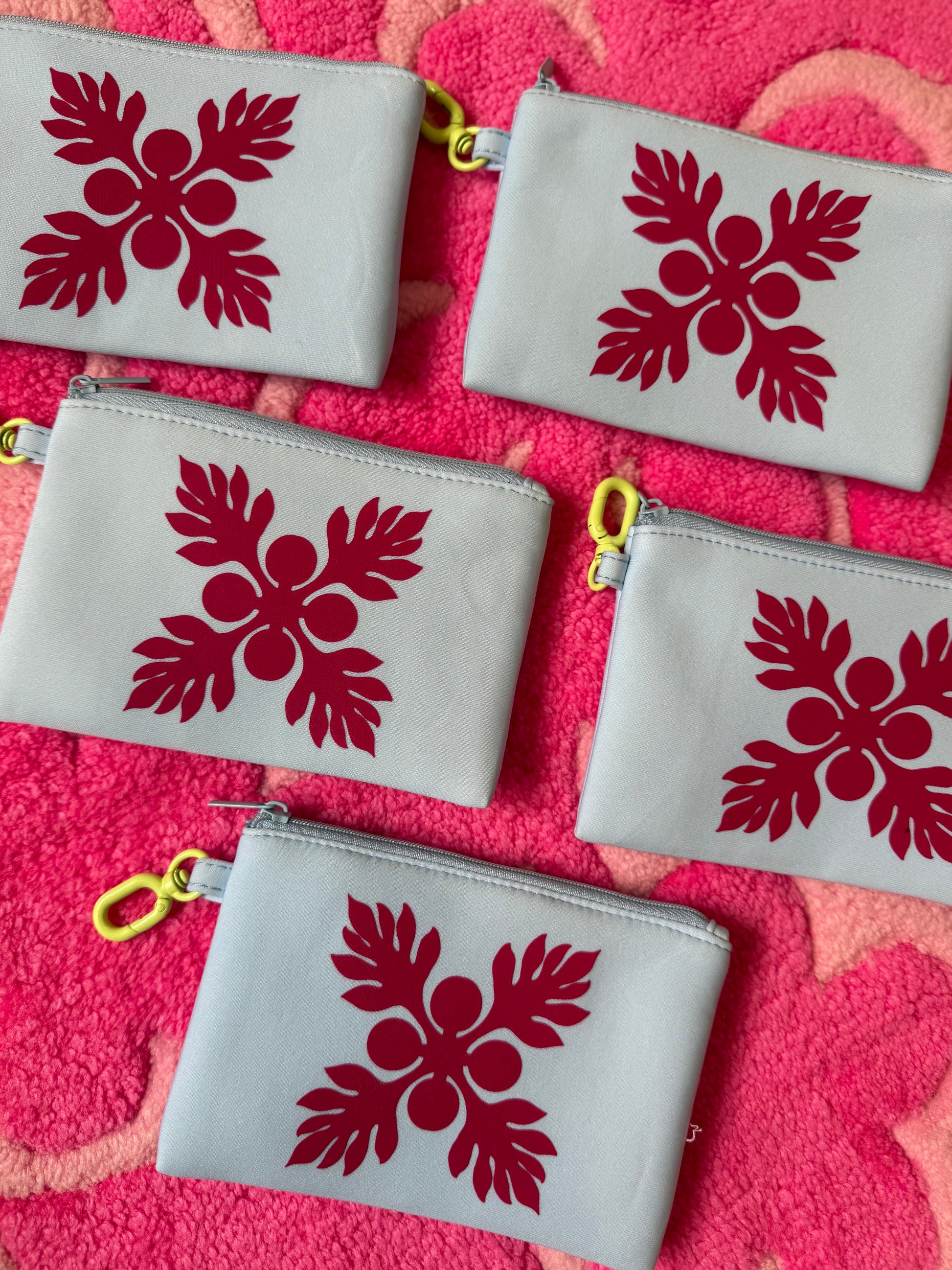Light blue zipper pouch measures 6”x4” with a pink kuiki design